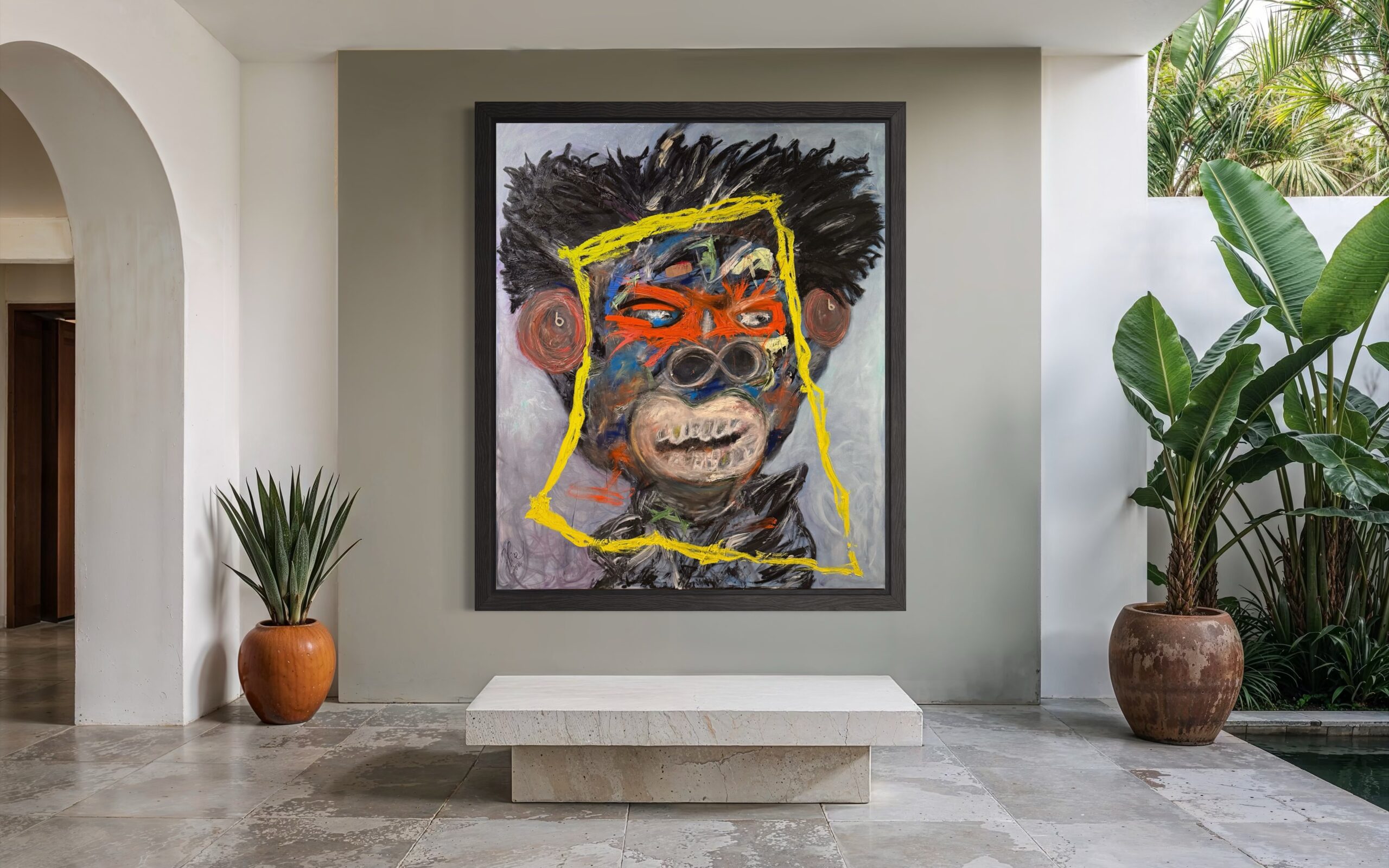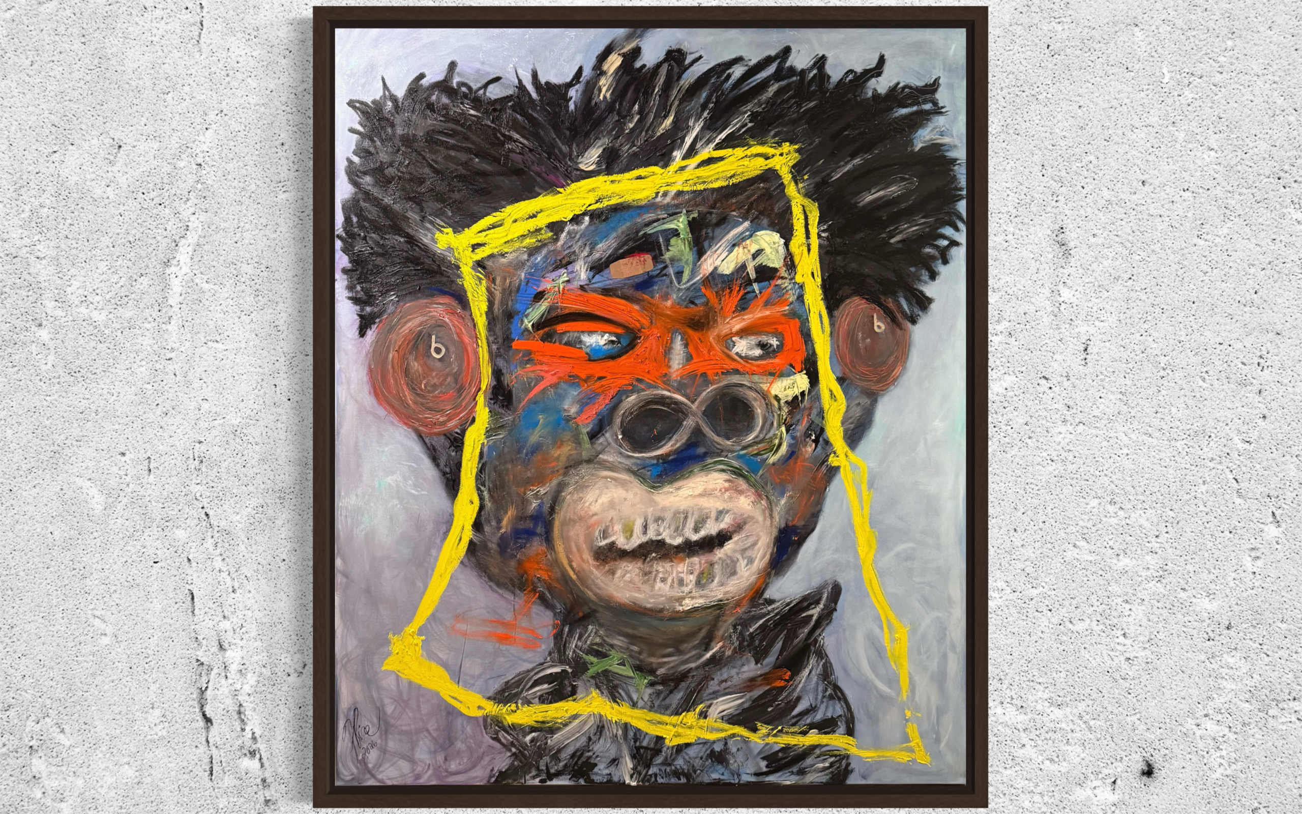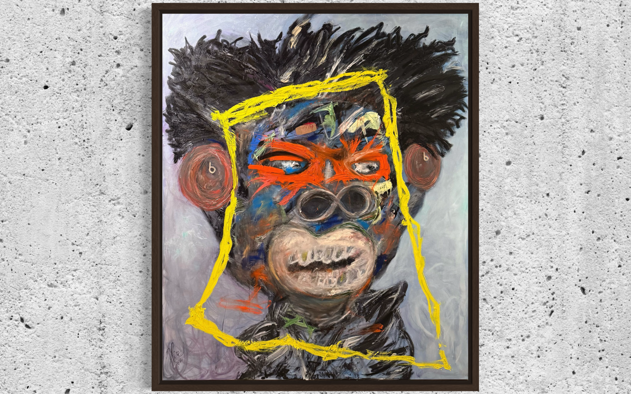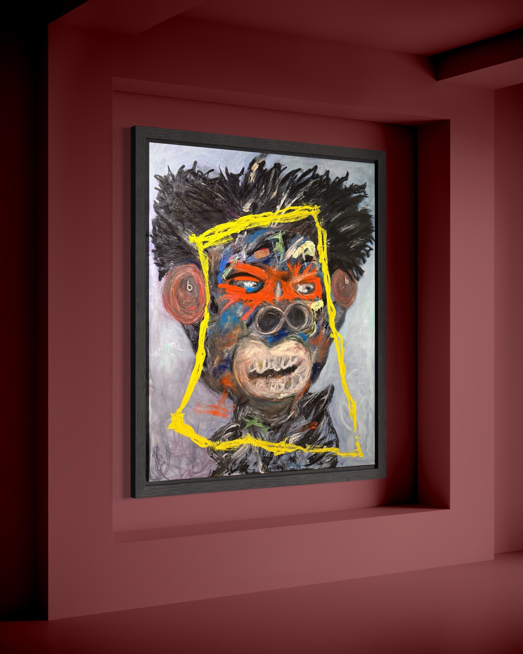 Music becomes a form of sanctuary. The headphones signify intentional focus, inner alignment, and self-preservation — a refusal to absorb external noise while healing is still underway. Though bruised, the figure is not broken. Though tested, he remains joyful.