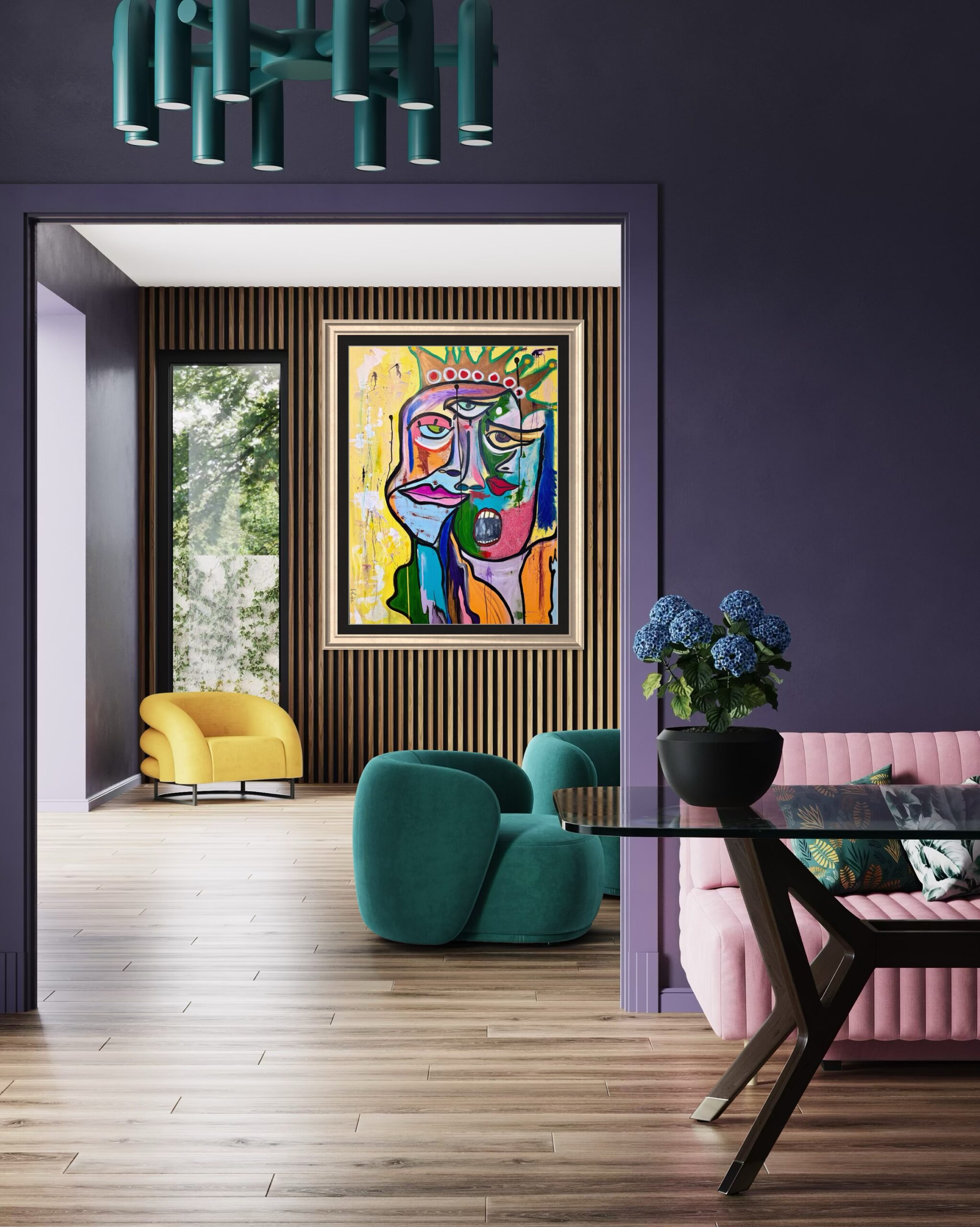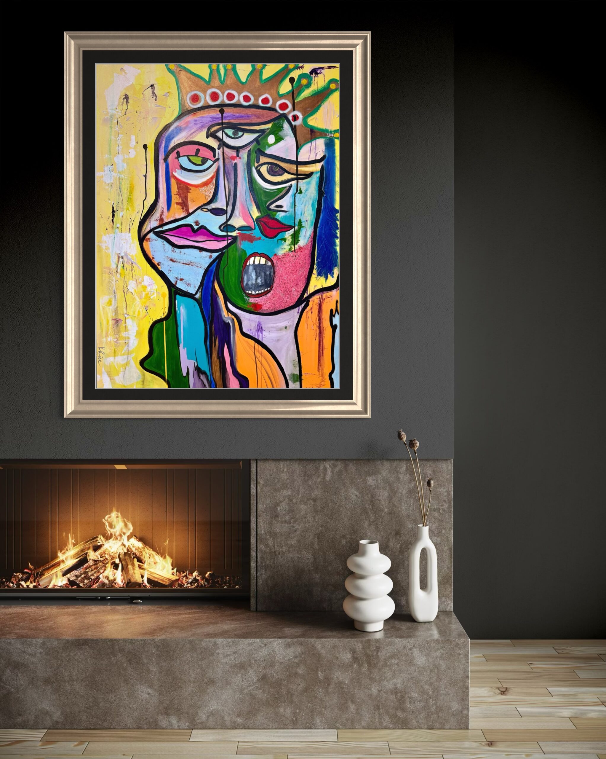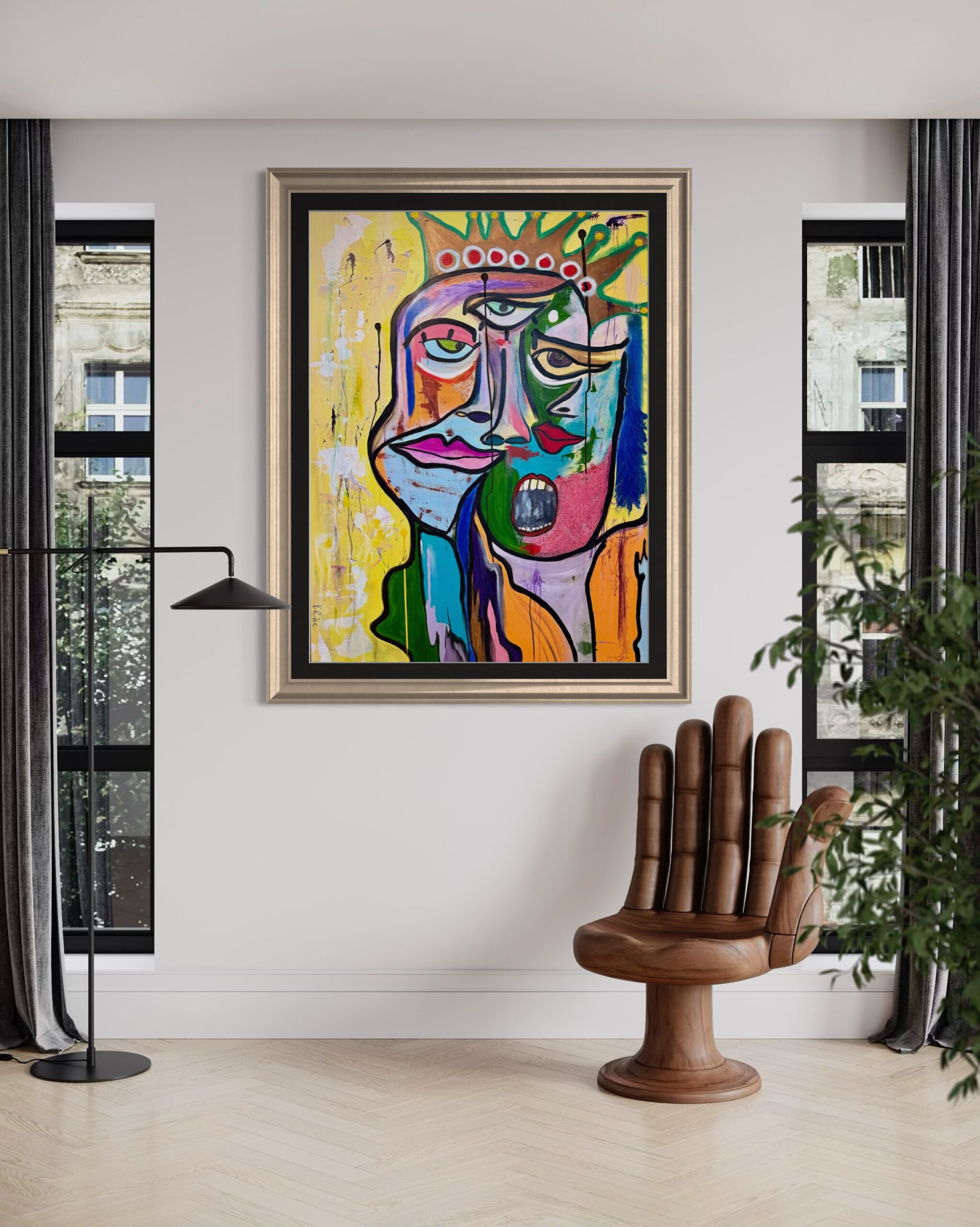 “Straw” is is a tribute to the emotional weight we carry while wearing the CROWN-SHYT gets REAL. The ‘Crowned” are expected to smile, balance it all, stay strong, and hold it all together. And some days you don’t know whether to laugh, cry, trip out or scream. The bright colors tell one story, but look closely: there are eyes of trepidation, intuition, exhaustion, and a scream beneath it all.